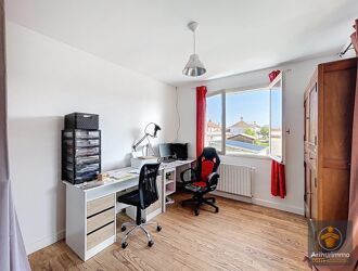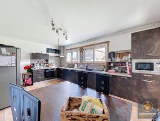 - A l'étage : une grande pièce de vie lumineuse avec coin cuisine et cheminée, une véranda exposée Sud Ouest, un dégagement avec placards, 3 chambres avec placards, une salle d'eau et WC séparés.